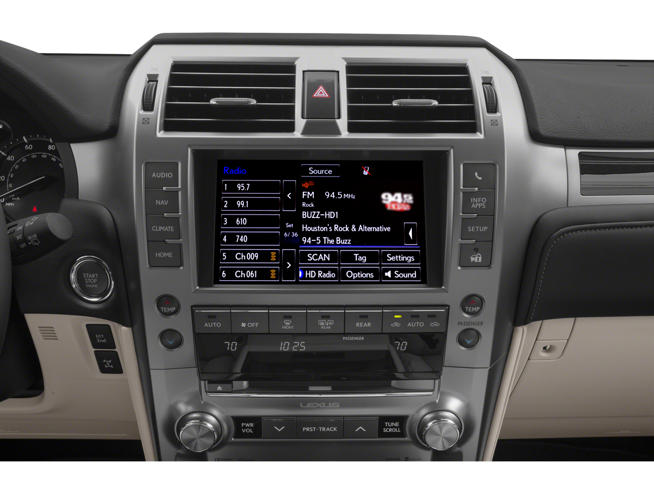 - Radio: AM/FM Lexus Multimedia System -inc: 8" touch screen, 9 speakers, in-dash single CD player w/Automatic Sound Levelizer (ASL), MP3/WMA capability, cache radio, subscription-free traffic and weather updates via HD Radio, Bluetooth® and USB smartphone connectivity and Siri Eyes Free mode w/select and play music from iTunes, call contacts, hear and compose text messages and emails, hear sports scores, stock information and weather, use maps and get directions (turn-by-turn navigation can be requested through Siri and Apple maps) map displayed on phone screen, perform POI searches, requested search information read back to driver over vehicle audio system, read notifications and read calendar information, add reminders, calendar appointments and notes