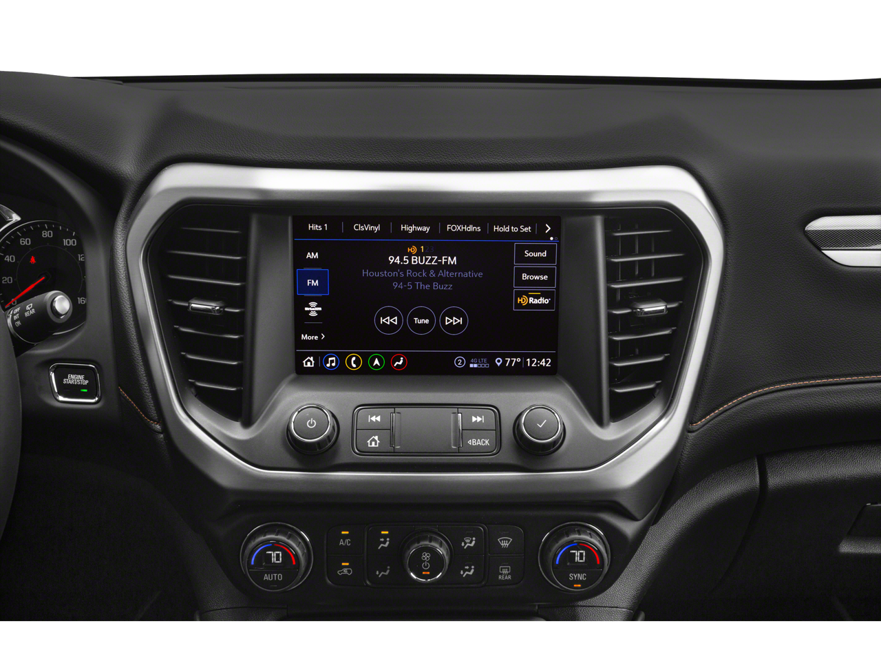 - Audio system, 8" diagonal GMC Infotainment System with Navigation includes multi-touch display, AM/FM/SiriusXM stereo, Bluetooth® streaming audio for music and most phones, Android Auto and Apple CarPlay capability for compatible phones, advanced voice recognition, in-vehicle apps, personalized profiles for infotainment and vehicle settings