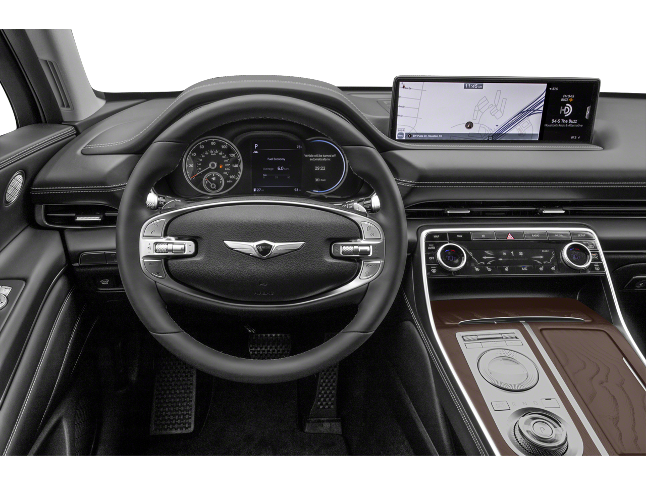 - Radio: AM/FM/SiriusXM/HD Premium Audio System -inc: 6-channel internal amplifier, integrated navigation, 14.5" HD LCD screen, Apple CarPlay and Android Auto, Bluetooth® hands-free phone system w/audio streaming, steering wheel controls, USB and Genesis Connected Services