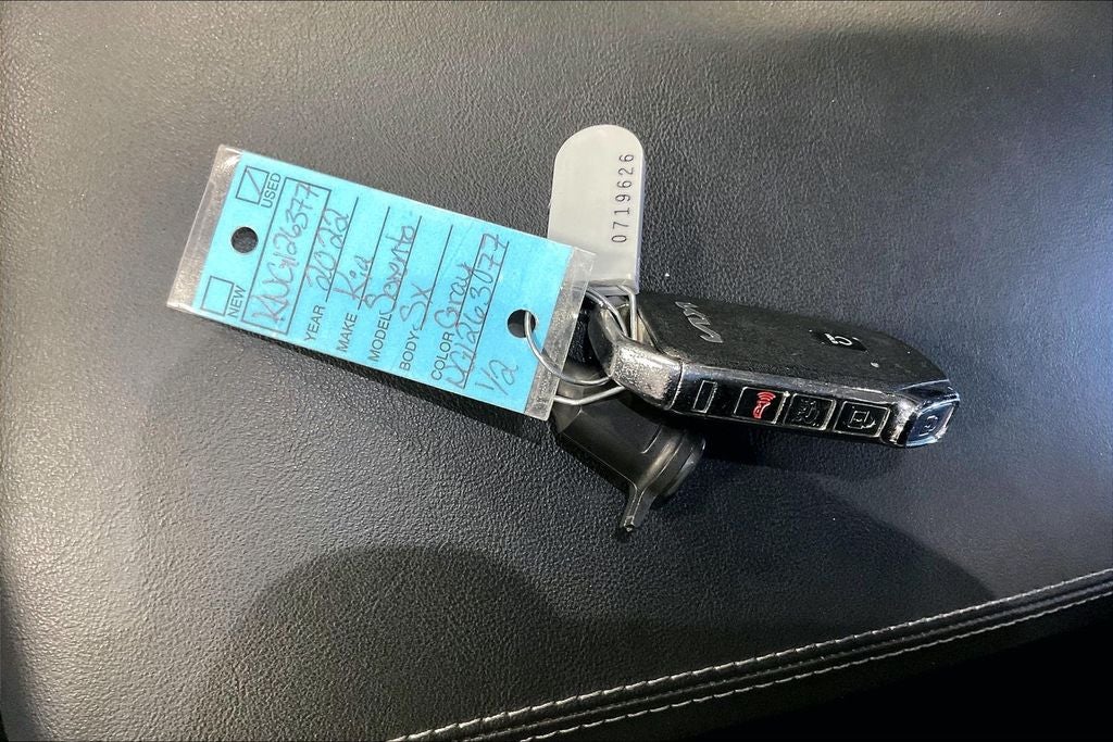 2022 Kia Sorento SX SX Wolf Gray 4D Sport Utility FWD 2.5L I4 DGI Turbocharged DOHC 16V LEV3-ULEV70 281hp 8-Speed DCT 1 Owner, New Feature, Apple CarPlay / Android Auto, Backup camera, Blind Spot Monitoring, Bluetooth®, Heated seats, Leather seats, Navigation system, Remote Start, Third-row seating, Sorento SX, 4D Sport Utility, 2.5L I4 DGI Turbocharged DOHC 16V LEV3-ULEV70 281hp, 8-Speed DCT, FWD, Wolf Gray, Black Artificial Leather, 3.316 Axle Ratio, 3rd row seats: split-bench, 4-Wheel Disc Brakes, 6 Speakers, ABS brakes, Air Conditioning, Alloy wheels, AM/FM radio: SiriusXM, Apple CarPlay & Android Auto, Auto High-beam Headlights, Automatic temperature control, Brake assist, Bumpers: body-color, Cargo Net, Carpeted Cargo Mat w/Seatback Protection, Carpeted Floor Mats, Delay-off headlights, Driver door bin, Driver vanity mirror, Dual front impact airbags, Dual front side impact airbags, Electronic Stability Control, Emergency communication system: UVO Link, Exterior Parking Camera Rear, Four wheel independent suspension, Front anti-roll bar, Front Bucket Seats, Front Center Armrest, Front dual zone A/C, Front fog lights, Front reading lights, Fully automatic headlights, Heated door mirrors, Heated Front Bucket Seats, Heated front seats, Illuminated entry, Knee airbag, Leather steering wheel, Low tire pressure warning, Navigation System, Occupant sensing airbag, Outside temperature display, Overhead airbag, Overhead console, Panic alarm, Passenger door bin, Passenger vanity mirror, Power door mirrors, Power driver seat, Power Liftgate, Power moonroof, Power passenger seat, Power steering, Power windows, Radio data system, Radio: AM/FM Audio System, Rear air conditioning, Rear anti-roll bar, Rear reading lights, Rear window defroster, Rear window wiper, Remote keyless entry, Roof rack: rails only, Security system, Smart Key w/ Push Button and Remote Start, Speed control, Speed-sensing steering, Split folding rear seat, Spoiler, Steering wheel mounted audio controls, SynTex Artificial Leather Seat Trim, Tachometer, Telescoping steering wheel, Tilt steering wheel, Traction control, Trip computer, Turn signal indicator mirrors, Variably intermittent wipers, Wheels: 8.5J x 20 Gloss Black Alloy.