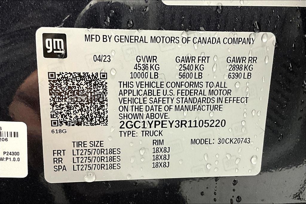 - Tire, spare LT275/70R18 all-terrain, blackwall (Included and only available with (QF6) LT275/70R18E all-terrain, blackwall tires, (QG3) LT275/70R18 mud-terrain, blackwall tire or (QF9) LT275/65R20 all-terrain, blackwall tires with (E63) Durabed, pickup bed. Included when (QFG) LT275/65R20 blackwall off-road tires are ordered without (ZW9) pickup bed delete. Available to order when (ZW9) pickup bed delete and (QF6) LT275/70R18E all-terrain, blackwall tires are ordered.)