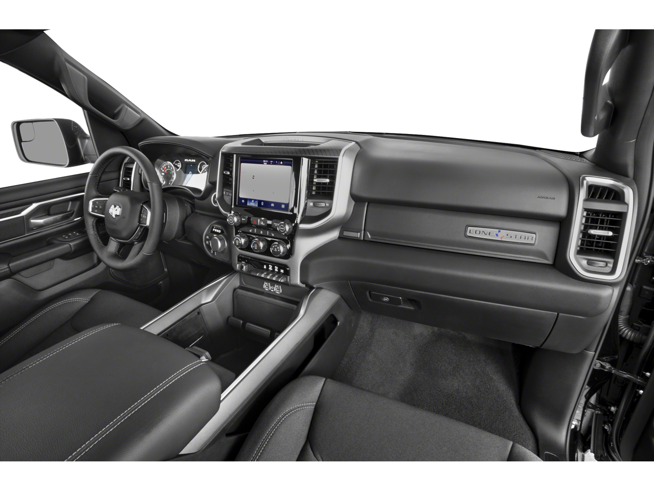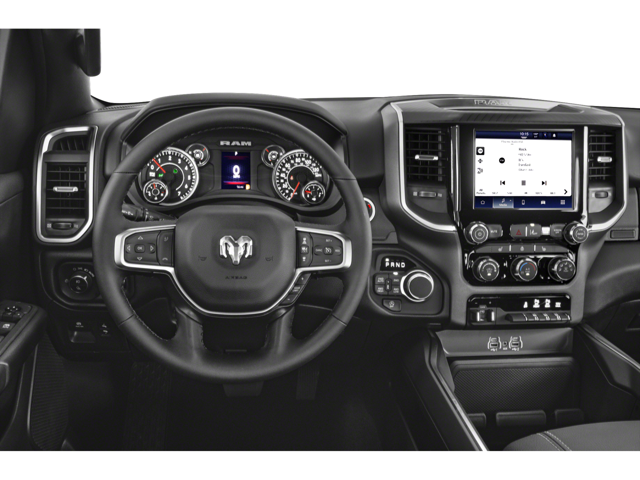 2025 Ram 1500 Big Horn/Lone Star Big Horn/Lone Star Diamond Black Crystal Pearlcoat 4D Crew Cab 4WD 3.6L V6 24V VVT 8-Speed Automatic 1 Owner, New Feature, Apple CarPlay / Android Auto, Backup camera, Bluetooth®, Heated seats, Navigation system, Remote Start, 1500 Big Horn/Lone Star, 4D Crew Cab, 3.6L V6 24V VVT, 8-Speed Automatic, 4WD, Diamond Black Crystal Pearlcoat, Diesel Gray/Black Cloth, 115V Auxiliary Power Outlet, 2nd Row In Floor Storage Bins, 3 Rear Seat Head Restraints, 3.21 Rear Axle Ratio, 33 Gallon Fuel Tank, 4 Way Front Headrests, 4-Wheel Disc Brakes, 400W Inverter, 4G LTE Wi-Fi Hot Spot, 6 Speakers, ABS brakes, Accent Color Tailgate Handle, Air Conditioning, Alloy wheels, AM/FM radio, Apple CarPlay/Android Auto, Auto High-beam Headlights, Auto Power-Folding Mirrors, Auto-Dimming Exterior Driver Mirror, Auto-Dimming Rear-View Mirror, Bed Utility Group, Big Horn Badge, Big Horn Level 1 Equipment Group, Black Exterior Mirrors, Black Premium Power Mirrors, Black Trailer Tow Power Mirrors, Brake assist, Bumpers: chrome, Cloth Bench Seat, Compass, Connectivity - US/Canada, Convex Wide-Angle Exterior Mirror Insert, Delay-off headlights, Driver door bin, Dual front impact airbags, Dual front side impact airbags, E-Locker Rear Axle, Electronic Stability Control, Exterior 115V AC Outlet, Exterior Mirrors Courtesy Lamps, Exterior Mirrors w/Heating Element, Exterior Mirrors w/Supplemental Signals, Falken Brand Tires, Front anti-roll bar, Front Center Armrest w/Storage, Front Extra HD Shock Absorbers, Front fog lights, Front reading lights, Front Seat Back Map Pockets, Front wheel independent suspension, Fully automatic headlights, Glove Box Lamp, GPS Antenna Input, Heated door mirrors, Heated Front Seats, Heated Steering Wheel, Illuminated entry, Integrated Voice Command w/Bluetooth®, Leather Wrapped Steering Wheel, Low tire pressure warning, Manual Adjust 4-Way Front Passenger Seat, Manual Folding Exterior Mirrors, Manual Telescoping Mirrors, Manufacturer's Statement of Origin, Mirror Clearance/Running Lights, MOPAR 4 Adjustable Cargo Tie-Down Hooks, MOPAR Spray In Bedliner, Occupant sensing airbag, Off Road Decals, Off Road Group, Outside temperature display, Overhead airbag, Overhead console, Panic alarm, ParkView Rear Back-Up Camera, Passenger door bin, Passenger vanity mirror, Pick-Up Box Lighting, Power 2-Way Driver Lumbar Adjust, Power Adjust 8-Way Driver Seat, Power Adjustable Pedals, Power door mirrors, Power steering, Power windows, Power-Adjustable Convex Aux Mirrors, Quick Order Package 23Z Big Horn, Radio data system, Radio: Uconnect 5 W w/8.4 Display, Raised Ride Height, RAM Grille Badge - Chrome, Rear 60/40 Folding Seat, Rear anti-roll bar, Rear Extra HD Shock Absorbers, Rear Power Sliding Window, Rear seat center armrest, Rear step bumper, Rear Window Defroster, Remote keyless entry, Selec-Speed Control, Speed control, Split folding rear seat, Steering Wheel Mounted Audio Controls, Sun Visors w/Illuminated Vanity Mirrors, Supplier Part Tracking (J-1), Tachometer, Telescoping steering wheel, Tilt steering wheel, Tow Hooks, Towing Technology Group, Traction control, Trailer Brake Control, Trailer Hitch Line-Up Assist, Trailer Reverse Steering Control, Trailer Tire Pressure Monitoring System, Trailer Tow Group, Trailer Tow Mirrors, Tri-Fold Tonneau Cover, Trip computer, Universal Garage Door Opener, USB Host Flip, Variably intermittent wipers, Voltmeter, Wheel to Wheel Side Steps, Wheels: 18 x 8 Cast-Aluminum Painted, Wheels: 20 x 9 Aluminum Chrome Clad (WRK).