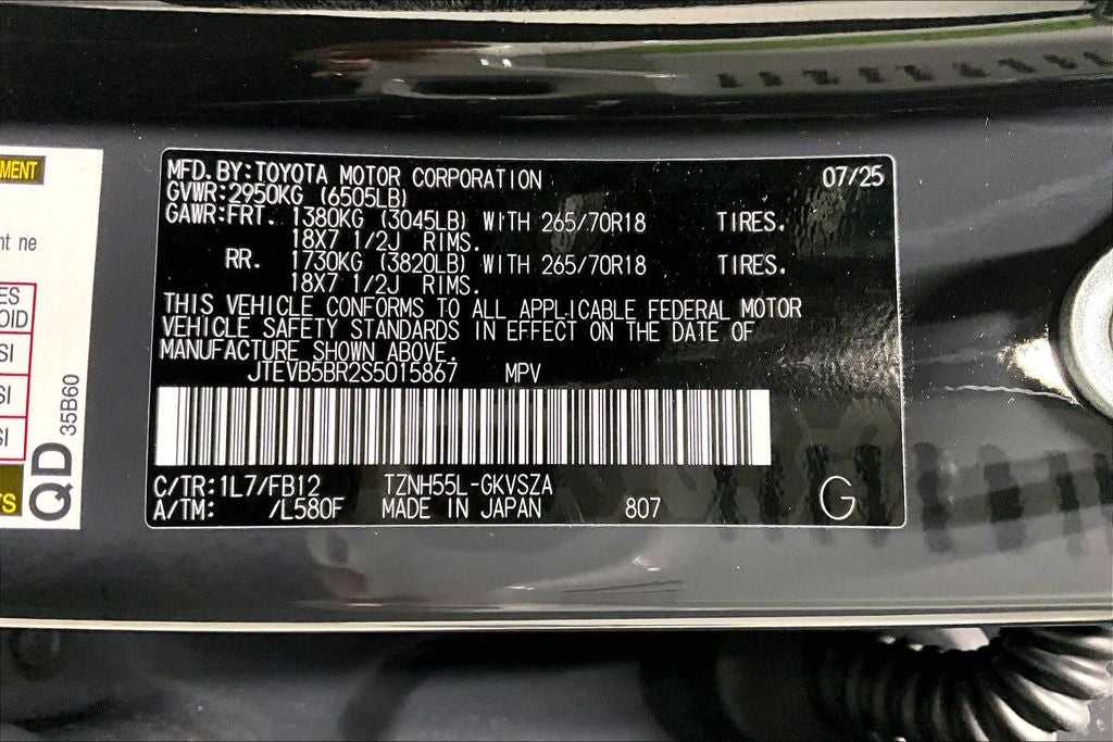 2025 Toyota 4Runner i-FORCE MAX Hybrid TRD Off Road TRD Off Road Underground 4D Sport Utility 4WD 2.4L I4 FI Hybrid Turbocharged DOHC 16V 8-Speed Automatic New Feature, Apple CarPlay / Android Auto, Backup camera, Blind Spot Monitoring, Bluetooth®, Navigation system, Remote Start, 4Runner i-FORCE MAX Hybrid TRD Off Road, 4D Sport Utility, 2.4L I4 FI Hybrid Turbocharged DOHC 16V, 8-Speed Automatic, 4WD, Underground, Black/Boulder W/Smoke Silver Ornament Cloth, 4-Wheel Disc Brakes, 8 Speakers, ABS brakes, Air Conditioning, Alloy wheels, AM/FM radio: SiriusXM, Anti-whiplash front head restraints, Apple CarPlay/Android Auto, Auto High-beam Headlights, Automatic temperature control, Brake assist, Bumpers: body-color, Driver door bin, Driver vanity mirror, Dual front impact airbags, Dual front side impact airbags, Electronic Stability Control, Emergency communication system: Safety Connect (1-year trial), Exterior Parking Camera Rear, Fabric Seat Trim, Front anti-roll bar, Front Bucket Seats, Front Center Armrest, Front dual zone A/C, Front fog lights, Front reading lights, Front wheel independent suspension, Heated door mirrors, Heated Front Bucket Seats, Illuminated entry, Knee airbag, Leather Shift Knob, Leather steering wheel, Low tire pressure warning, Occupant sensing airbag, Outside temperature display, Overhead airbag, Overhead console, Panic alarm, Passenger door bin, Passenger vanity mirror, Power door mirrors, Power steering, Power windows, Radio: 8 Audio, Rear anti-roll bar, Rear seat center armrest, Rear side impact airbag, Rear window defroster, Rear window wiper, Remote keyless entry, Security system, Speed control, Speed-sensing steering, Split folding rear seat, Spoiler, Steering wheel mounted audio controls, Tachometer, Telescoping steering wheel, Tilt steering wheel, Traction control, Trip computer, Variably intermittent wipers, Wheels: 18 Matte-Black Painted Alloy.