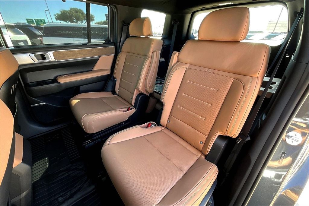 The Santa Fe's spacious and luxuriously appointed interior is a true sanctuary on wheels. Quilted Premium Nappa Leather Seat Trim and Heated and Ventilated Front Bucket Seats ensure unparalleled comfort, while the Power Liftgate and Cargo Tray make loading and unloading a breeze. The Power Moonroof and Panoramic Sunroof flood the cabin with natural light, creating a bright and airy atmosphere.